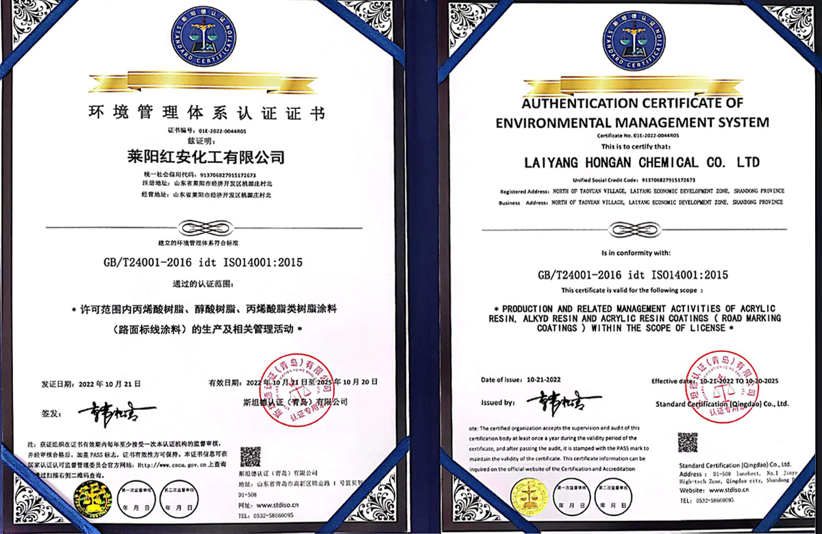 紅安化工經過近二十年的打造和積淀,現已建成了一家專業(yè)研制生產涂料合成樹脂的綜合型工廠,位于山東省半島的腹地--萊陽市。公司已通過了三體系認證,即ISO9000質量管理體系認證和環(huán)境、職業(yè)健康安全管理體系認證,并獲得了六項國家發(fā)明專利,八項實用新型專利;19年榮獲山東省高新企業(yè)稱號,22年通過了復審;22年榮獲山東省瞪羚企業(yè)稱謂,還有其他一些榮譽稱號不再一一敘說。 公司現有樹脂合成反應釜29套,各類樹脂年生產能力約8萬噸,具有完善的檢測儀器和應用服務條件。